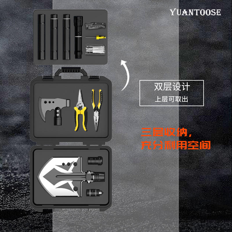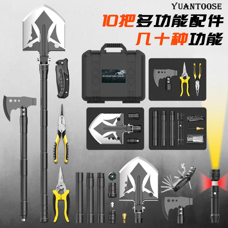 YUANTOOSE จอบพับอเนกประสงค์แบบยุทธวิธี เครื่องมือเอาตัวรอดกลางแจ้งพร้อมขวาน อุปกรณ์ตั้งแคมป์ TD14 36