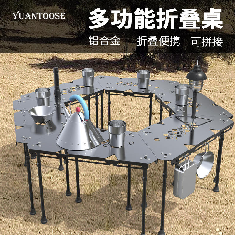 โต๊ะพับกลางแจ้ง YUANTOOSE ขนาด 26.8x56.2x40 ซม. โต๊ะปิคนิคแบบพกพาทำจากอลูมิเนียมอัลลอยด์