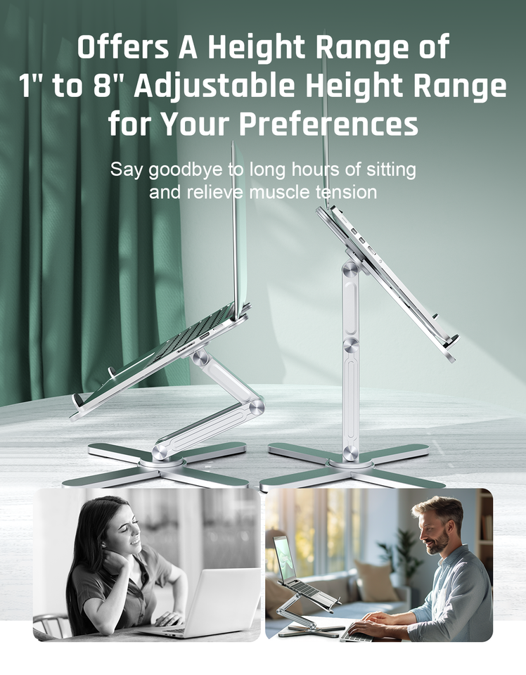 Yubwvo ขาตั้งแล็ปท็อปแบบพกพาปรับได้2.1-8นิ้วโต๊ะโลหะพับได้360หมุนได้ระบายความร้อนสำหรับแท็บเล็ตพีซี