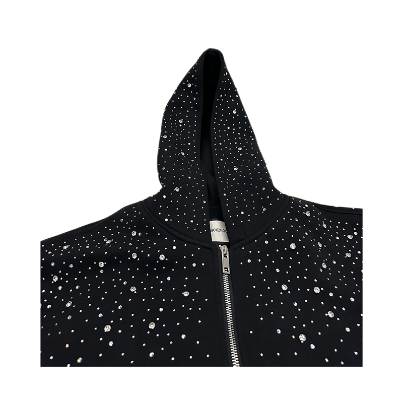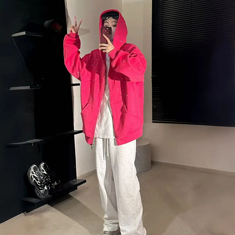 เสื้อฮู้ดดี้ YUCHEN รุ่นใหม่ ผ้าหนา 500gsm ผ้าฝ้าย 100% ล้างสีแบบ Acid Wash ทรง Pullover ผ้า French Terry ตกแต่งคริสตัลแบบกำหนดเอง ซิปหน้า สำหรับฤดูหนาว