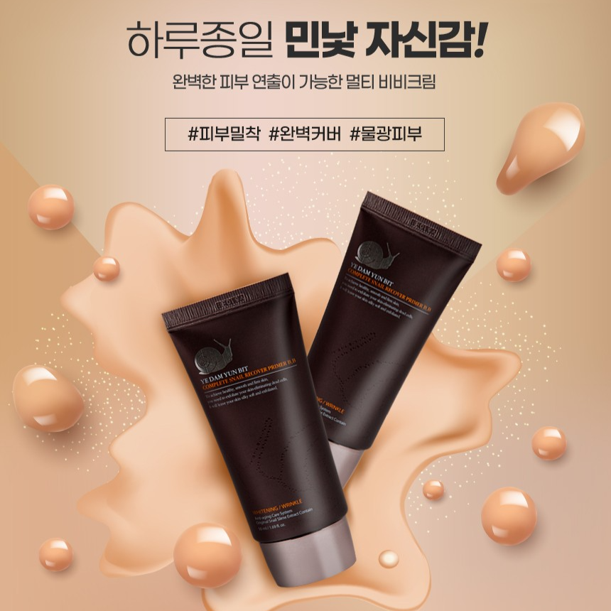 Yunbit ครีมหอยทาก mucin BB ขนาด50มล. ไพรเมอร์เกาหลีพร้อมอาร์บูตินและอะดีโนซีนสำหรับการดูแลผิวขาวและริ้วรอย