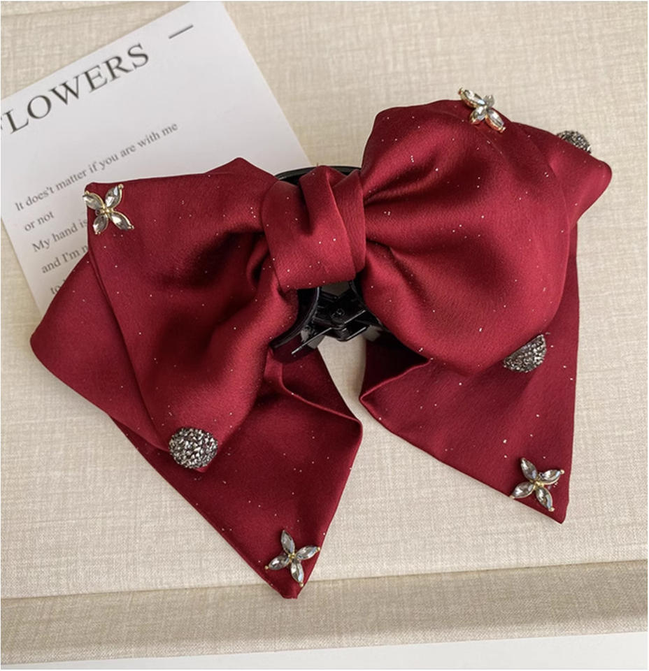 กิ๊บติดผมกำมะหยี่หรูหรา YUSE C7 ประดับโบว์ ดีไซน์เจ้าหญิง คลิปหนีบผมรูปฉลาม ประดับเพชร สไตล์เกาหลี