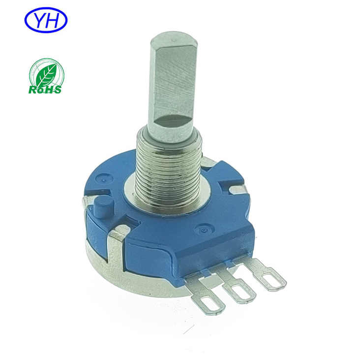 ชื่อผลิตภัณฑ์:โพเทนชิโอมิเตอร์แบบหมุนปิดผนึกฟิล์มคาร์บอนเพลาโลหะ24มม.
