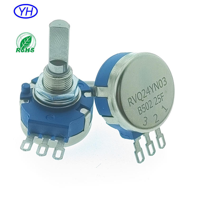 Yuwah RVQ24YN ได้ยาวนาน1000000รอบคุณภาพสูง24มม. โพเทนชิโอมิเตอร์แบบหมุนเพลาโลหะ500ohm ความต้านทาน1K 5K 10K 100K