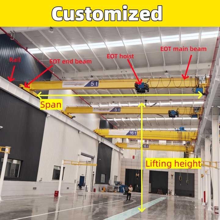 เครนเหนือศีรษะแบบคานเดี่ยว YUZHONG ขนาด 1 ตัน 2 ตัน 3 ตัน 5 ตัน สำหรับใช้ในโรงงาน พร้อมมอเตอร์ เครื่องยนต์ เกียร์ ระยะช่วง 40 เมตร ระยะยก 10 เมตร