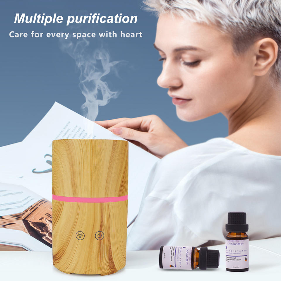 เครื่องเพิ่มความชื้นในอากาศแบบอัลตราโซนิก YX-110 ความจุ 0.5 ลิตร ดีไซน์ลายไม้ พร้อมไฟ LED ใช้เป็นเครื่องกระจายกลิ่นหอม เหมาะสำหรับใช้ในบ้านและสำนักงาน ใช้พลังงานจาก USB
