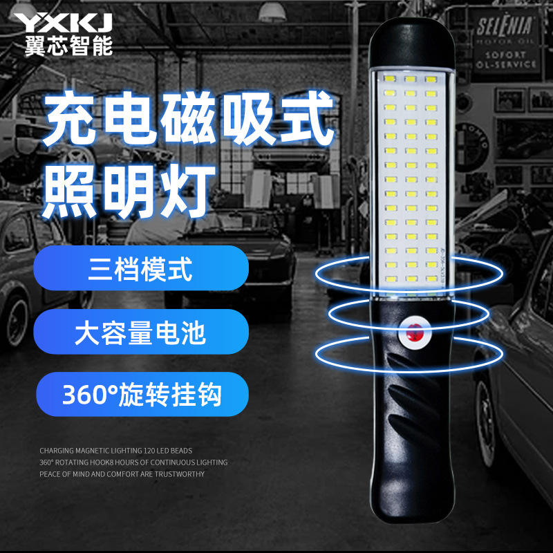 ไฟทำงานแม่เหล็กแบบชาร์จไฟได้ YXKJ 120 LED หมุนได้ 360 องศา พร้อมตะขอ สำหรับใช้ในโรงงาน งานกลางแจ้ง และไฟฉุกเฉิน