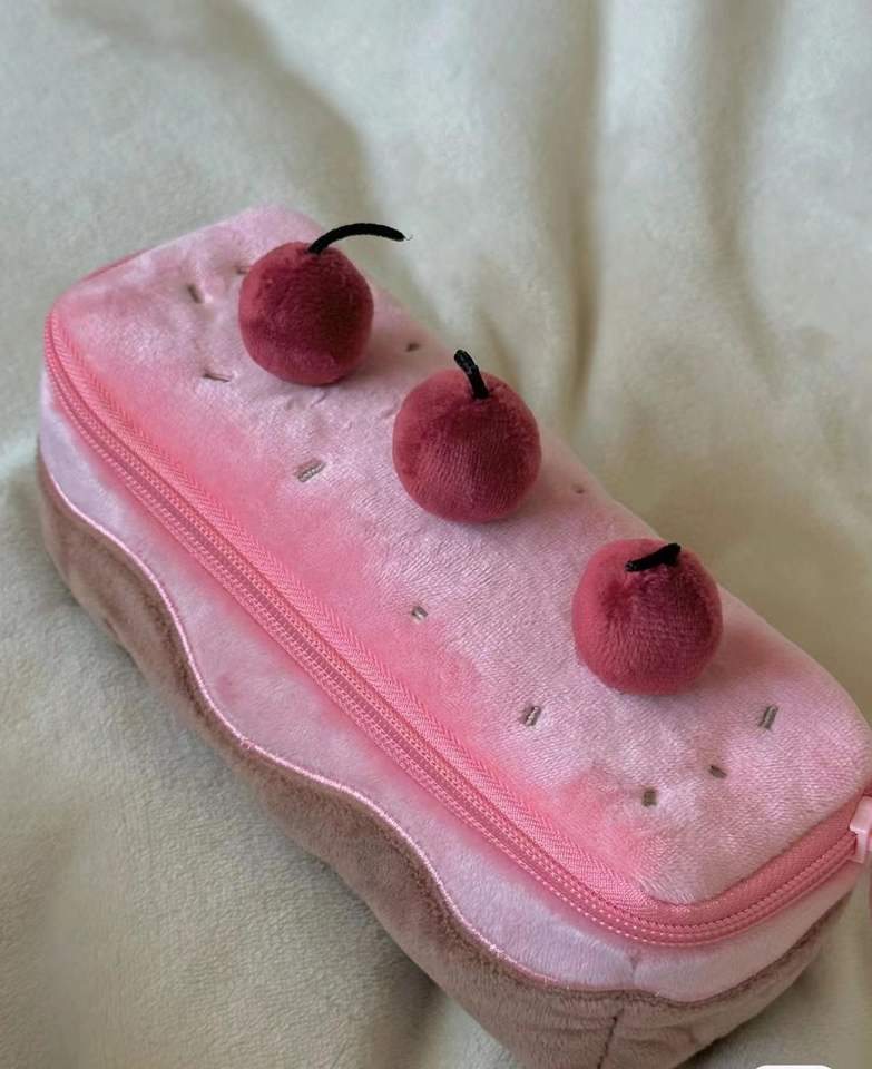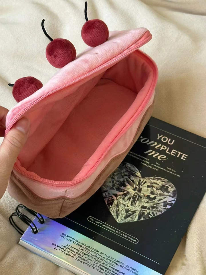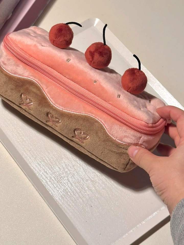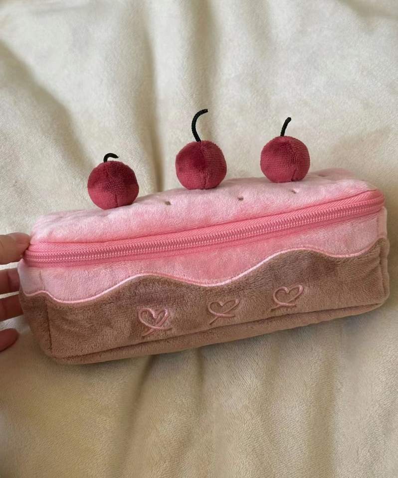 YY กล่องใส่ดินสอเค้กเชอร์รี่กำมะหยี่น่ารัก, ที่ใส่ปากกากระเป๋าแต่งหน้าเด็กผู้หญิงกล่องดินสอตุ๊กตา