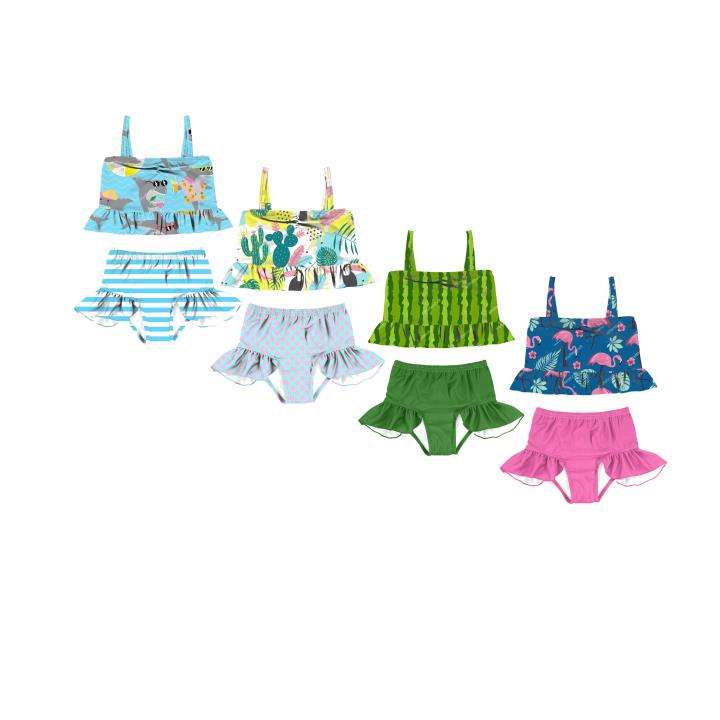 YZA-022ชุดว่ายน้ำสองชิ้นสำหรับเด็กทารกหญิงบิกินี่ชายหาดชุดว่ายน้ำแขนกุดลายทางสำหรับฤดูร้อน