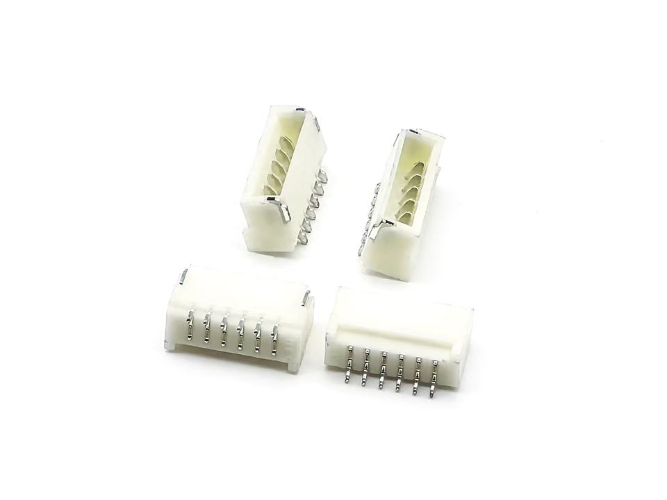 ขั้วต่อพินแบบหัวต่อเวเฟอร์ YZTECH PH1.0 มม. บางเฉียบ แบบมุมฉาก ชนิด SMT รุ่น A10005-06AWB สีขาว PA6T พร้อมขาแหลมยาว 6 ขา