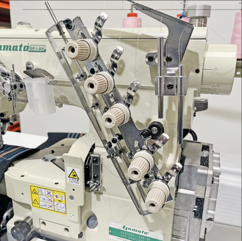 เครื่องเย็บอินเตอร์ล็อคแบบเตียงทรงกระบอกความเร็วสูง ยี่ห้อ Ya-ma-to รุ่น VC2700G แบบ 3 เข็ม 5 เส้น พร้อมด้ามจับพลาสติก DIY OEM