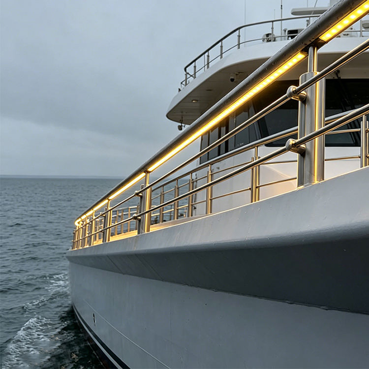 ราวบันไดเรือยอชท์ ราวบันไดกระจก ราวบันได LED ราวบันไดข้างอาคาร ราวบันไดริมทะเล ราวบันไดภายในอาคาร ราวบันไดภายนอกอาคาร ราวบันไดรักษาความปลอดภัย ระเบียง ลานบ้าน ระเบียง ราวบันได ราวจับ