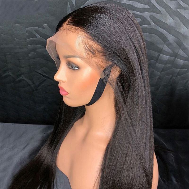 วิกผมตรงแบบ Yaki 13x4 พร้อมเชือกผูกด้านหน้า วิกผมแท้สำหรับผู้หญิง ไม่ต้องใช้กาว ความหนาแน่น 130%