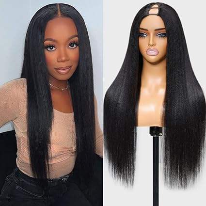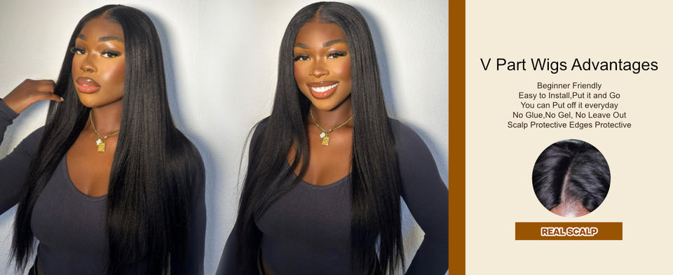 วิกผมแท้แบบ Yaki Straight V Part ไม่ต้องใช้กาว รุ่นอัพเกรด U Part Wig ไม่ต้องตัดผมด้านข้าง วิกผมแบบ Vpart สำหรับคนผมเล็ก แบบคลิปติดครึ่งหัว รูปทรง U v