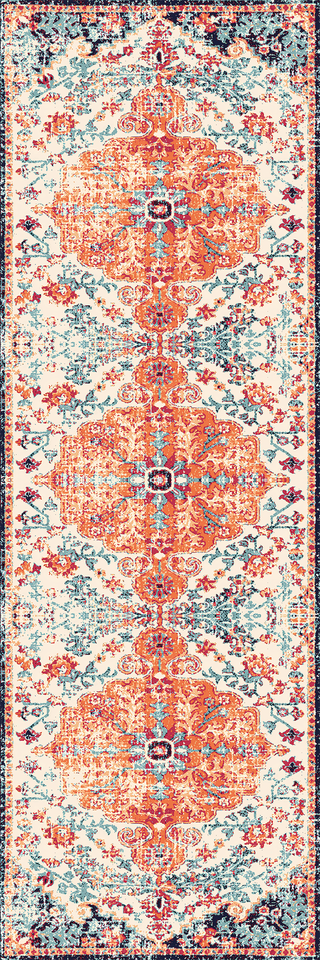 พรมพิมพ์ลายดิจิตอล Yakut Vintage Medallion ผิวผ้าเชนิลล์คอตตอน ฐานกันลื่น เหมาะสำหรับสัตว์เลี้ยง ขนสั้น สำหรับห้องนั่งเล่นและทางเดิน