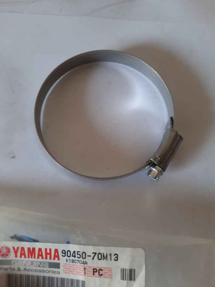 อะไหล่ยามาฮ่า รุ่น 90450-70M13 ชุดแคลมป์รัดสายยาง ความยาว 105 มม. กว้าง 90 มม. สูง 15 มม. ผลิตในญี่ปุ่น น้ำหนัก 45.5 กรัม ความยาว 141 ซม.