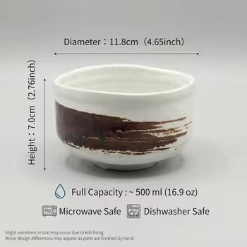 ถ้วยมัทฉะเซรามิกเกรดพิธีกรรม ยี่ห้อ Yamaki Kiln รูปทรงไม่สมมาตรเล็กน้อย ใช้กับไมโครเวฟได้ ผลิตในญี่ปุ่น สำหรับอุปกรณ์ชงชา