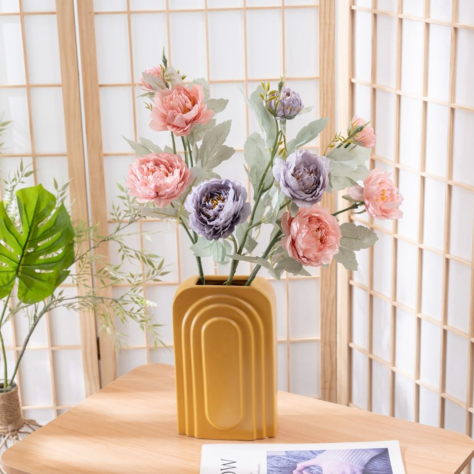 Yamo ช่อดอกโบตั๋นประดิษฐ์ผ้าไหมขนาดใหญ่สามช่อสำหรับงานแต่งงานของเจ้าสาวสำหรับวันแม่และกลับไปโรงเรียน