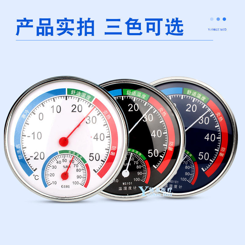 ยันไคเมด เดย์ล เทอร์โมมิเตอร์ ไฮโกรมิเตอร์ 130 มม. เครื่องวัดอุณหภูมิและความชื้นแบบติดผนังในร่มและกลางแจ้ง วัสดุโลหะ สำหรับใช้ในครัวเรือน