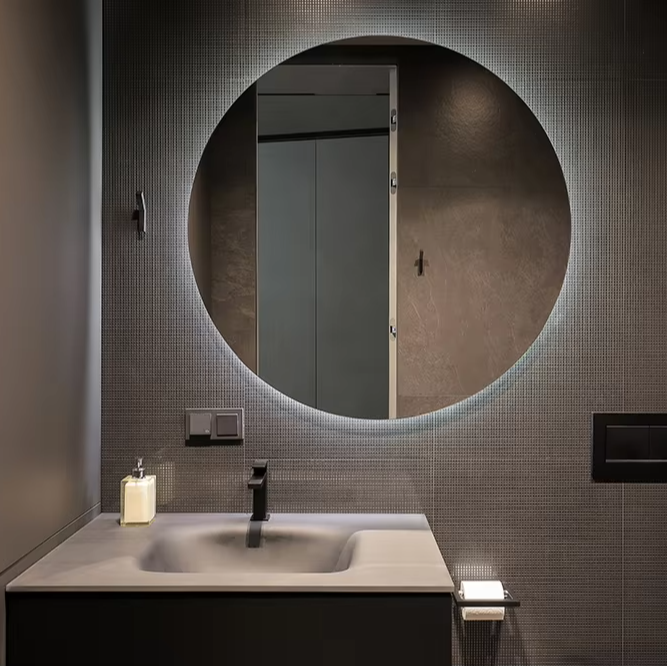 กระจกห้องน้ำ LED โมเดิร์นยี่ห้อ Yandiya แบบติดผนัง ใช้พลังงานแสงอาทิตย์ พร้อมไฟส่องหลัง ควบคุมอัจฉริยะ แผ่นทำความร้อนกราฟีน 500W ดีไซน์กระจกกันน้ำ