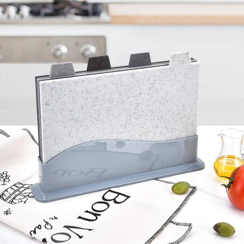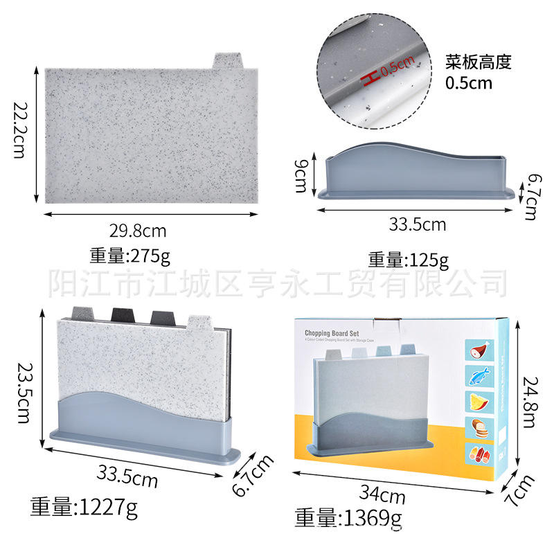 ชุดเขียงพลาสติก 4 ชิ้น ยี่ห้อหยางเจียง รูปทรงสี่เหลี่ยมผืนผ้า ผลิตจากพลาสติก PP ใช้กับเครื่องล้างจานได้ เหมาะสำหรับหั่นผลไม้ ผัก ใช้ในครัวเรือน