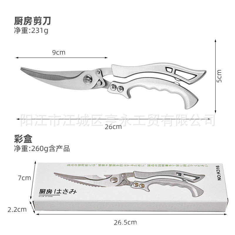 กรรไกรตัดกระดูกไก่สแตนเลสหยางเจียง ด้ามอลูมิเนียม กรรไกรตัดสัตว์ปีกสำหรับใช้ในครัวเรือน รุ่นที่ 1