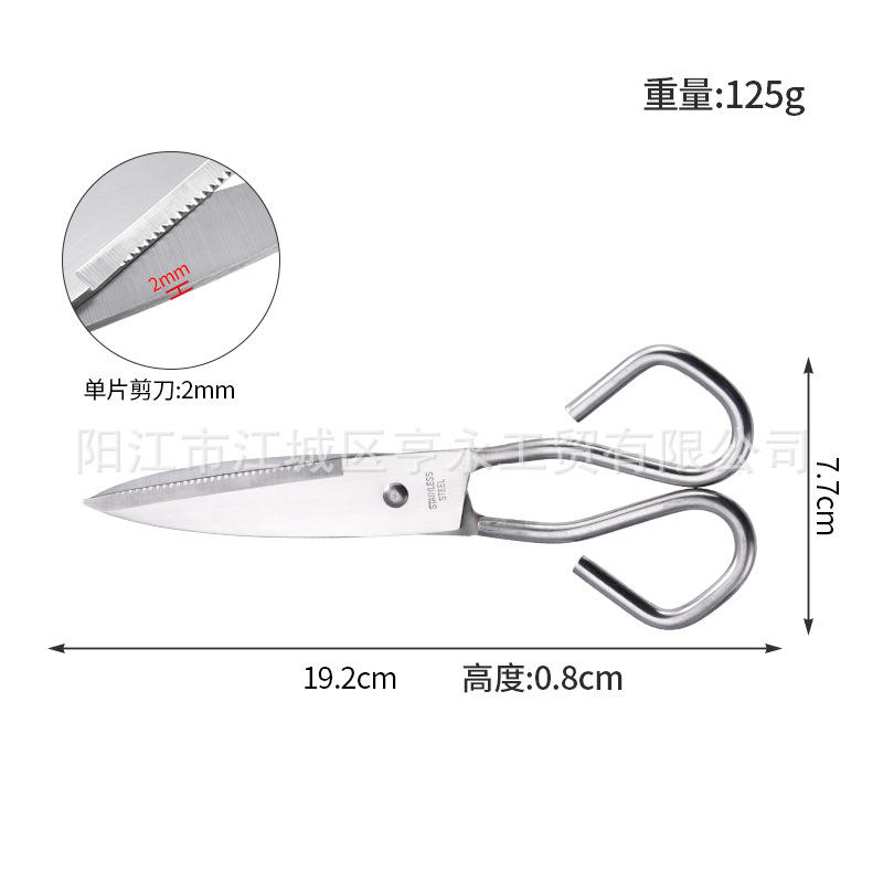 กรรไกรครัวสแตนเลสหยางเจียงรูปตัววีใช้ในบ้านเครื่องมือตัดอาหารอเนกประสงค์สีเงิน