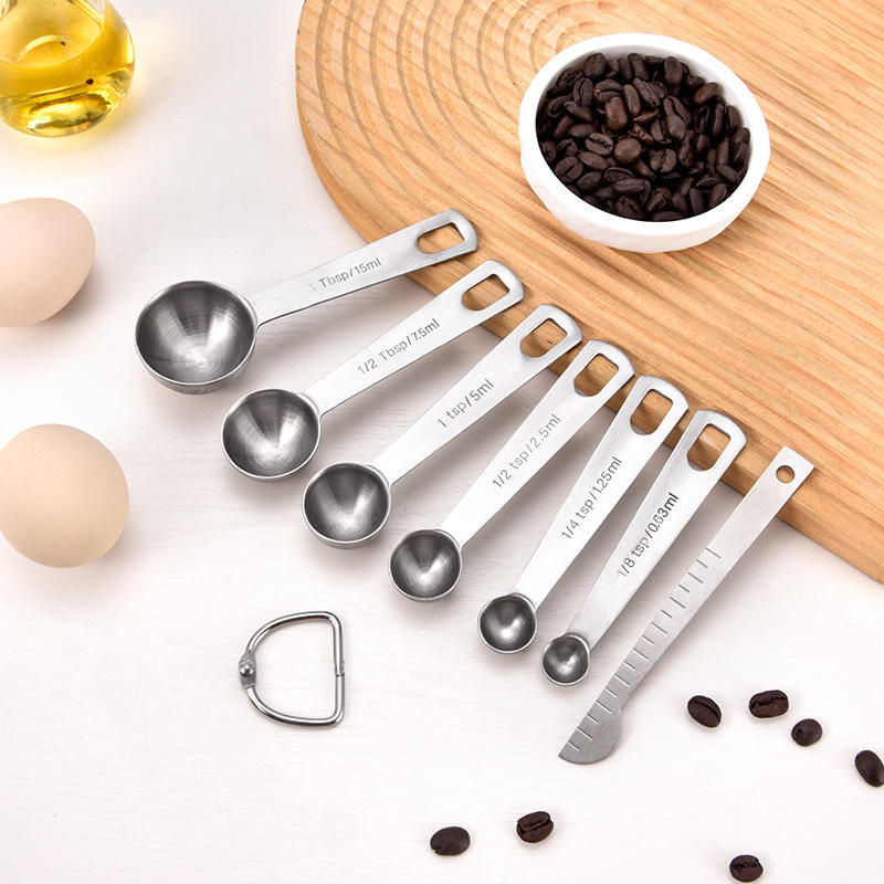 Yangjiang Stainless Steel Measuring Spoon Set 7 Piece Dishwasher Safe Minimalist Design For Cooking Baking Coffee