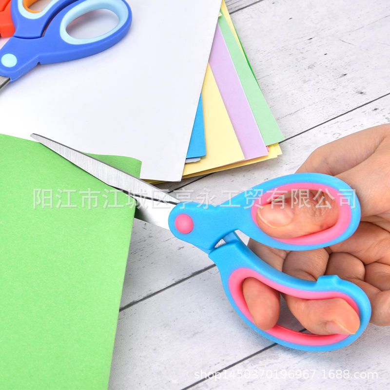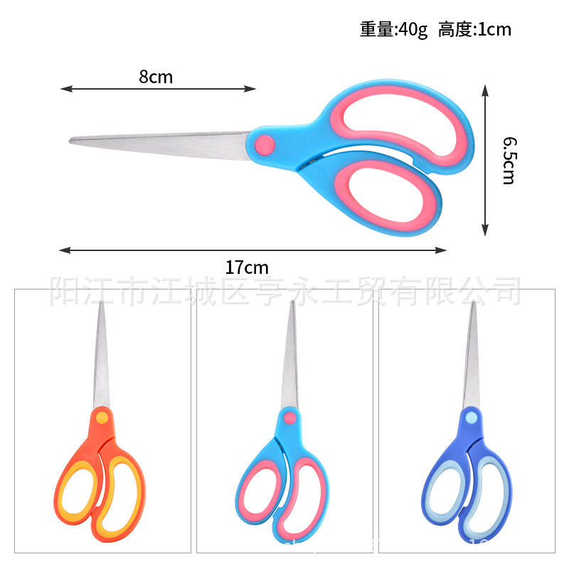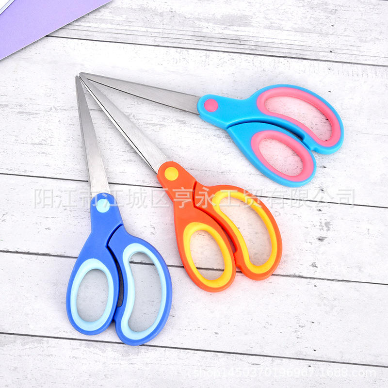 กรรไกรนักเรียนหยางเจียง 7 นิ้ว สแตนเลส ด้ามจับยางสีน้ำเงิน ใช้ในบ้าน สำนักงาน งานฝีมือ เครื่องมือตัดรูปตัววี