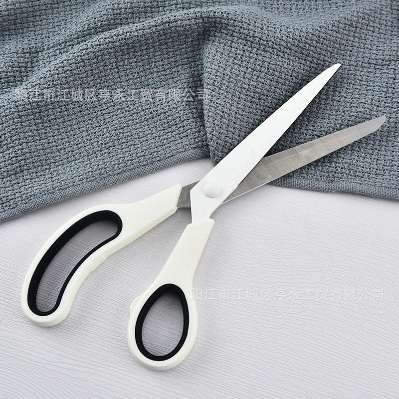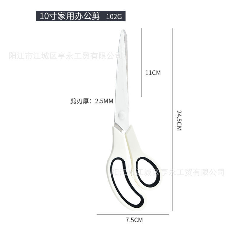 กรรไกรทำครัวเรือนยี่ห้อหยางเจียง สีขาว ขนาด 10 นิ้ว หัวตรง สำหรับใช้ในบ้าน สำนักงาน งานเย็บปักถักร้อย งานฝีมือ DIY เครื่องมือตัด