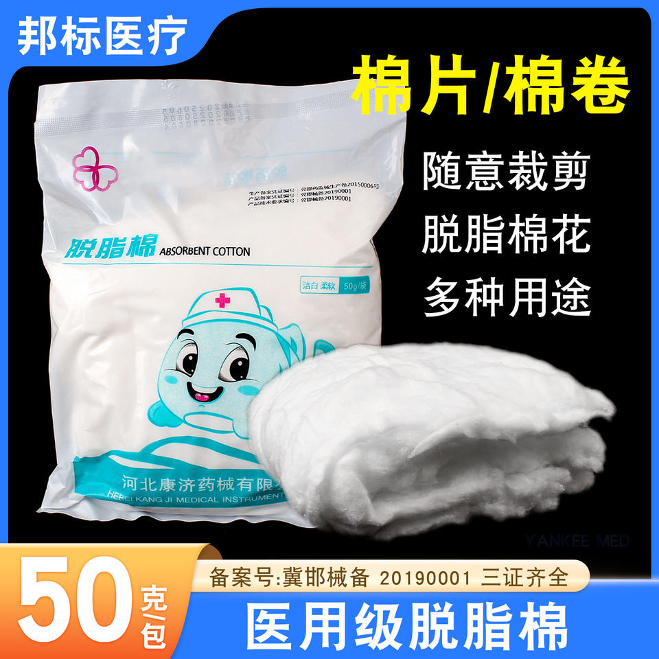 แผ่นสำลีดูดซับยานกี้ เมด 50 กรัม ไม่ผ่านการฆ่าเชื้อ สำหรับทำความสะอาดแผลผิวหนัง ใช้ครั้งเดียว