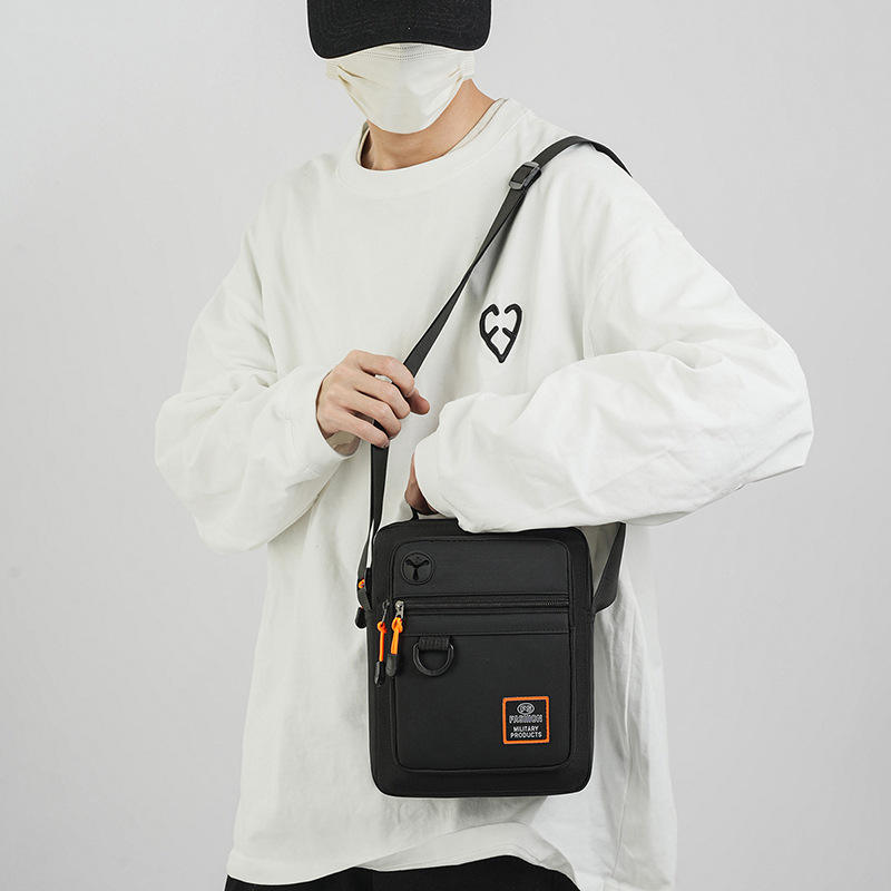 กระเป๋าคาดหน้าอกผู้ชายหยานหมิงผ้าอ็อกซ์ฟอร์ดสีดำน้ำหนักเบากระเป๋าสะพายข้างแฟชั่นสำหรับการเดินทางเพื่อการพักผ่อนฤดูใบไม้ผลิปี 2025