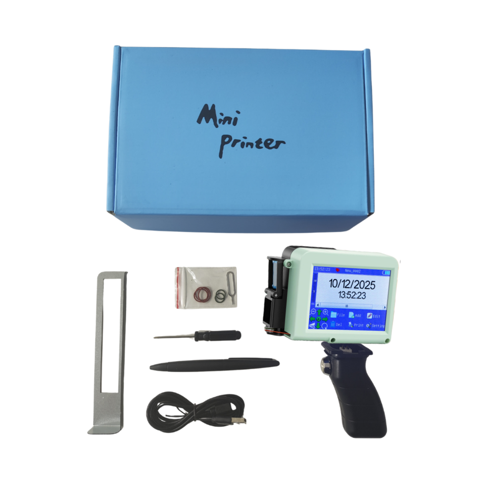 เครื่องพิมพ์ฉลากอิงค์เจ็ทแบบพกพา Yaomatec ขนาด 12.7 มม. รองรับหลายภาษา ใช้แบตเตอรี่ พกพาสะดวก เชื่อมต่อผ่าน USB สำหรับพิมพ์โลโก้ วันที่ หมายเลข คิวอาร์โค้ด บนกล่องกระดาษ