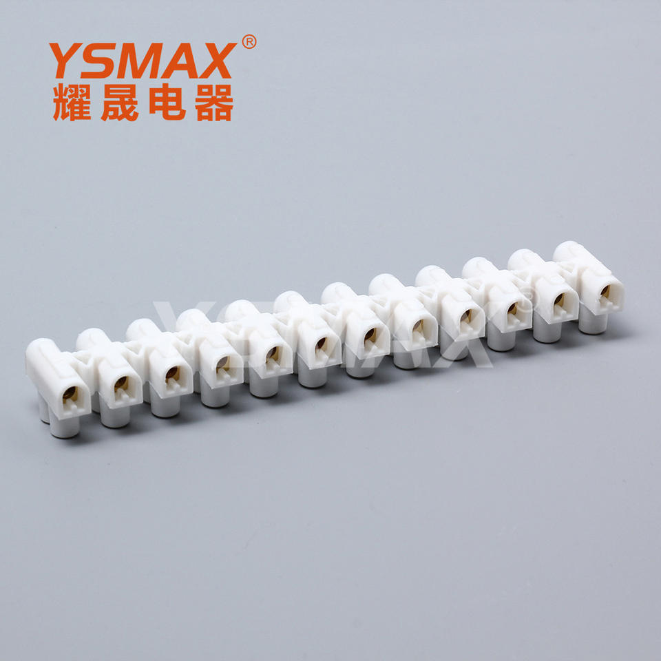 เทอร์มินัลบล็อก Yaosheng 12 ตำแหน่ง สีขาวนม รูปตัวยู ทองแดง ทนไฟ สำหรับจ่ายไฟ