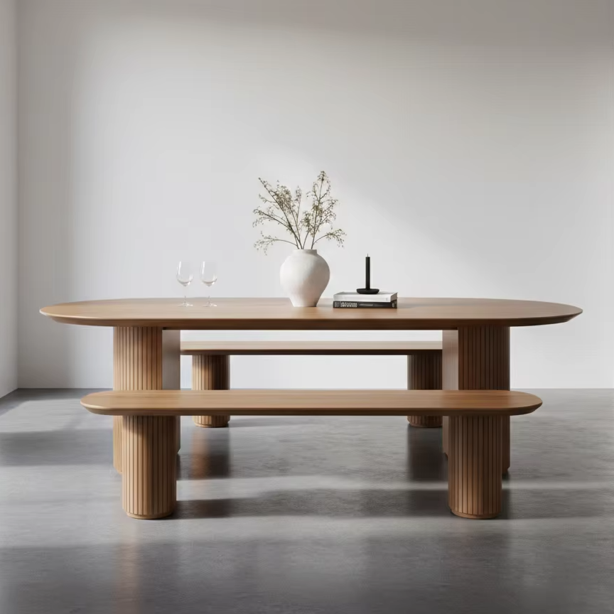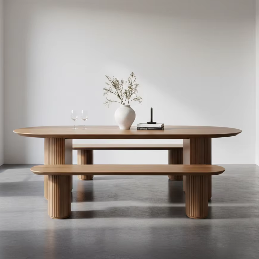 โต๊ะอาหารไม้สักแท้ยาร่า สไตล์สแกนดิเนเวียน โมเดิร์น มินิมอล ผลิตด้วยมือ เฟอร์นิเจอร์หรูหราสำหรับใช้ภายในและภายนอกอาคาร
