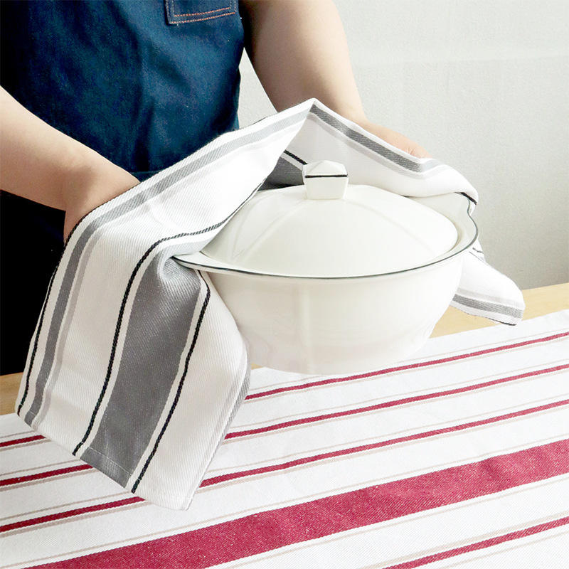 ผ้าเช็ดครัวลายทางย้อมเส้นด้าย ผ้าฝ้าย 100% รูปทรงสี่เหลี่ยมผืนผ้า สำหรับใช้ในบ้าน ซักเครื่องได้