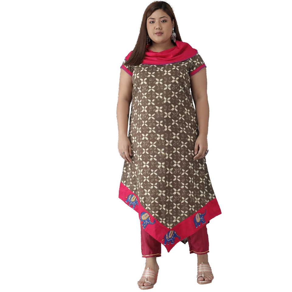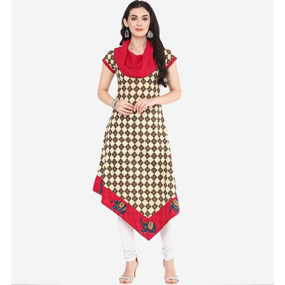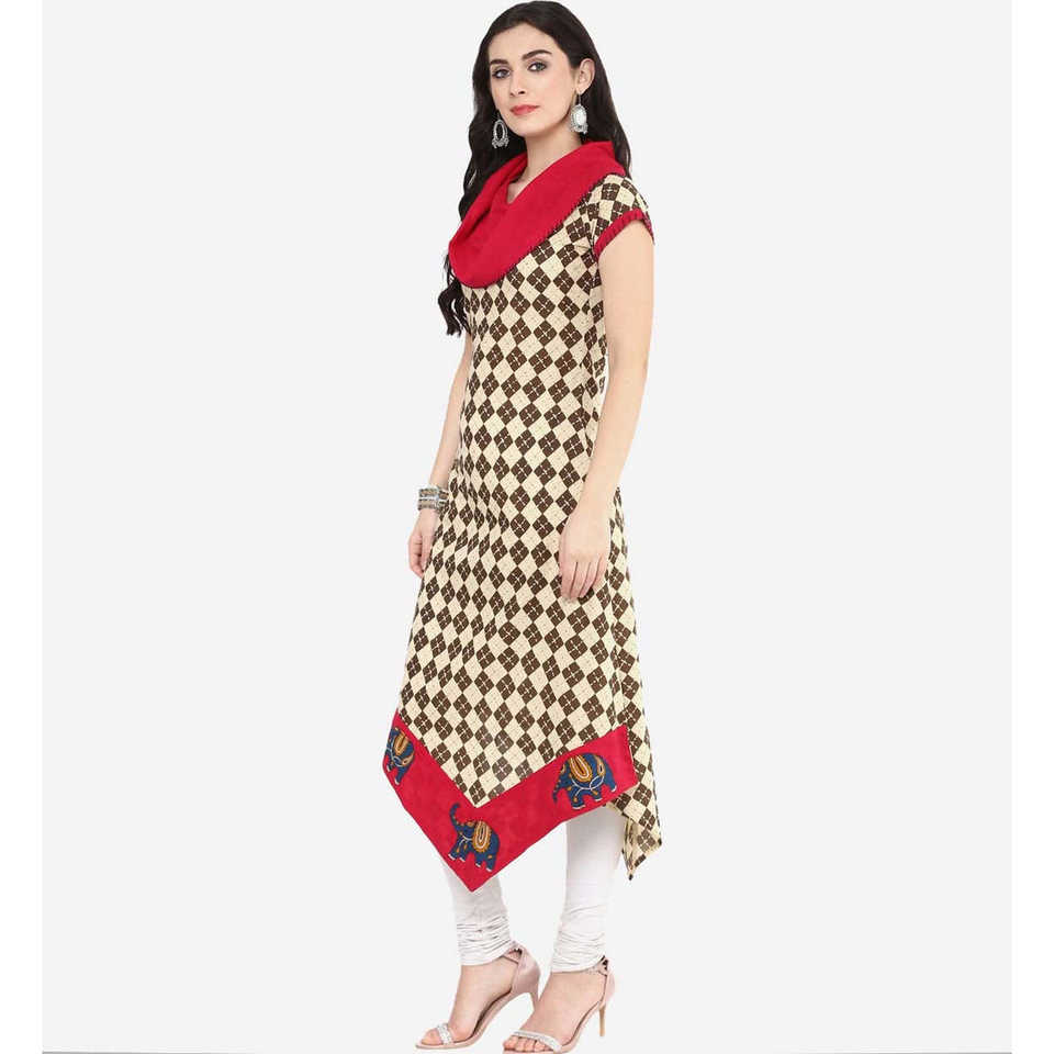 เสื้อคุर्ตาผ้าฝ้ายสีชมพู/น้ำตาลสำหรับผู้หญิงจาก Yash Gallery ดีไซน์หรูหราแบบอสมมาตร สวมใส่ได้ในโอกาสต่างๆ เช่น งานแต่งงาน งานปาร์ตี้ หรือใส่ทำงานในออฟฟิศ มีไซส์ XS-6XL