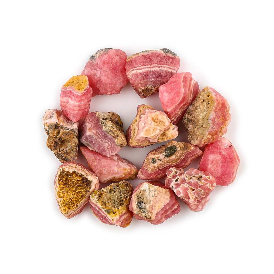 ยาชี โรโดโครไซต์อัญมณีคริสตัลดิบสีชมพูรูปร่างไม่สม่ำเสมอสำหรับทำเครื่องประดับหินบำบัดหินหลวม 5 ชิ้น