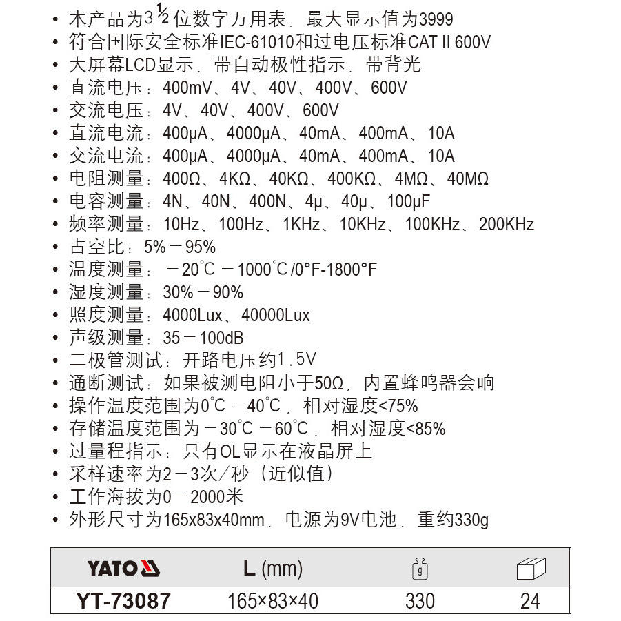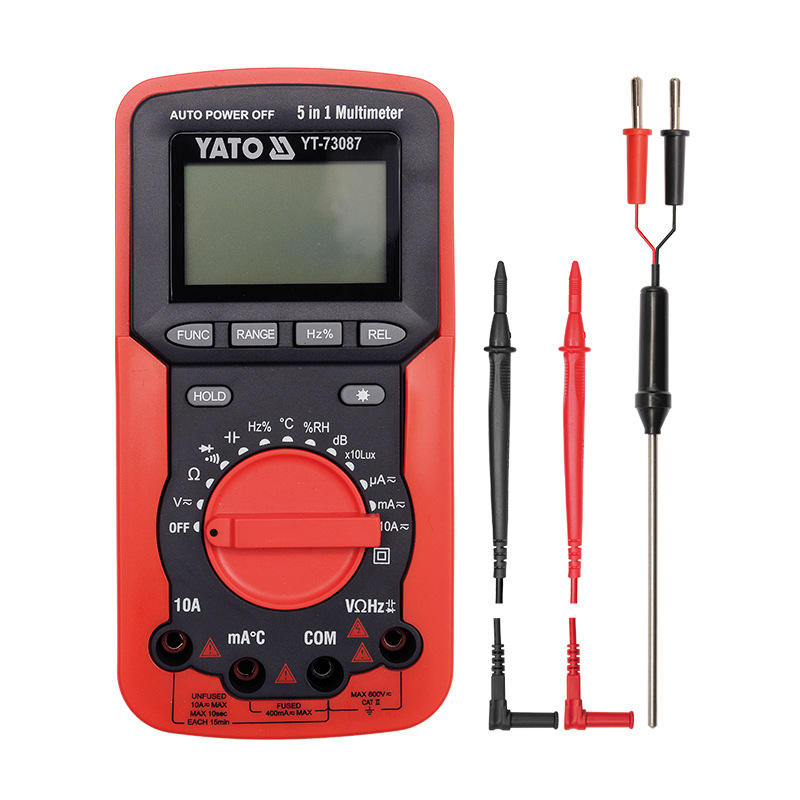 มัลติมิเตอร์ดิจิตอล 5 in 1 ยี่ห้อ Yato รุ่น YT 73087 ปิดเครื่องอัตโนมัติ พร้อมสายทดสอบ