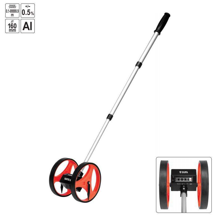 ล้อวัดระยะทางดิจิตอล Yato ขนาด 160 มม. พร้อมจอแสดงผลอิเล็กทรอนิกส์ สำหรับงานสำรวจและวัดพื้นที่