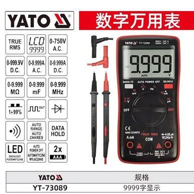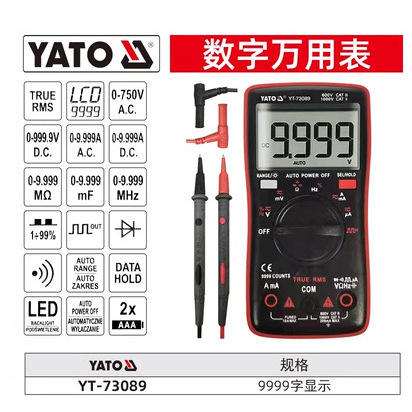 มัลติมิเตอร์ดิจิตอล Yato รุ่น YT-73089 จอแสดงผล 9999 หลัก แสดงค่า True RMS ปิดเครื่องอัตโนมัติ