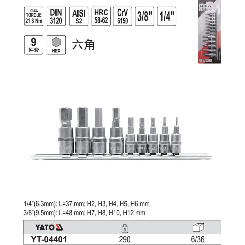 ชุดซ็อกเก็ตยาโตะ 9 ชิ้น หัวหกเหลี่ยม 1/4 3/8 นิ้ว สำหรับซ่อมรถยนต์