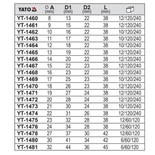 ประแจกระบอกยาโต 8 มม. หัวสไปลน์ ชุบโครเมียม เกรดอุตสาหกรรม สำหรับซ่อมยานยนต์ YT-1460