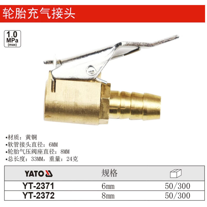 ที่หนีบเติมลมยางยี่ห้อ Yato ขนาด 6 มม. 8 มม. อะแดปเตอร์สายลมทองเหลืองสำหรับจุ๊บลมยางรถยนต์และจักรยาน