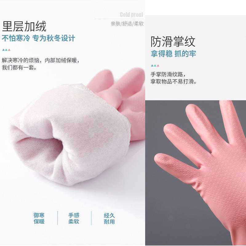 Yaxin Household Gloves 42cm Thickening Waterproof PVC Dishwashing Gloves With Fleece Lining For Kitchen Cleaning