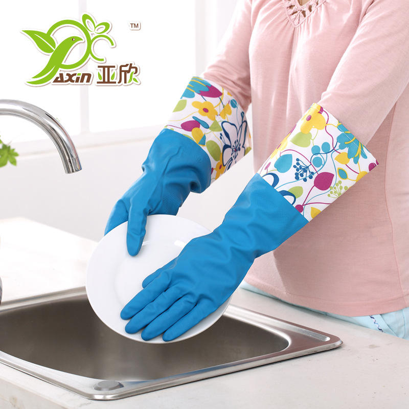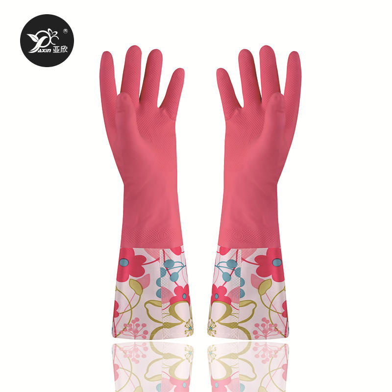 ถุงมือยางลาเท็กซ์ยาซิน 42 ซม. กันน้ำ ยาวพิเศษ สำหรับทำความสะอาดงานบ้าน พร้อมลวดลาย