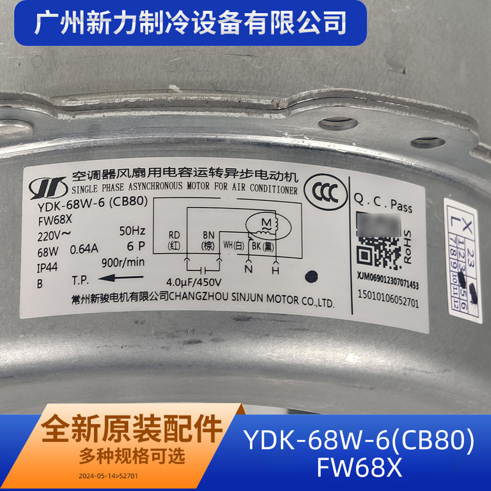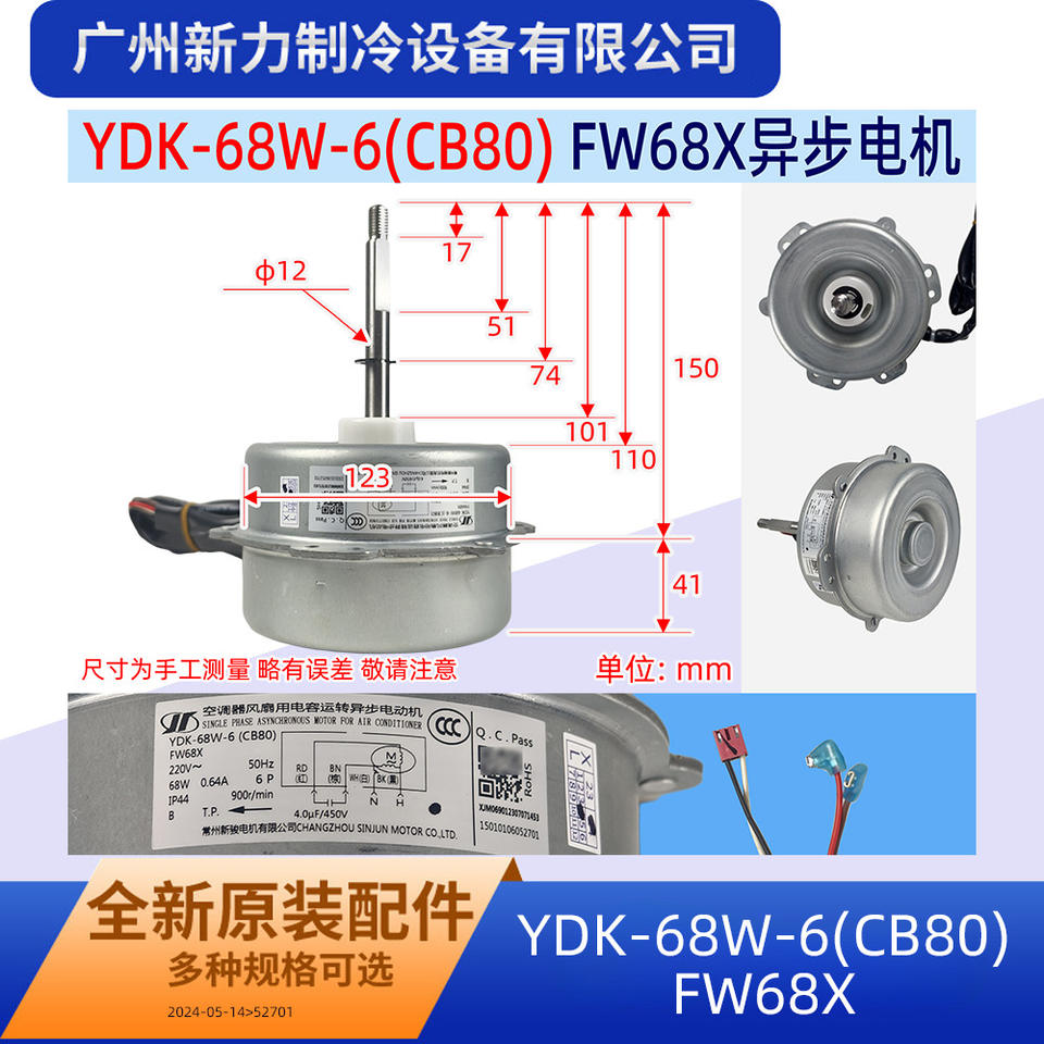 มอเตอร์แบบอะซิงโครนัสเฟสเดียว Ydk 68w 6 Cb80 ขนาดหน้าแปลน 80 มม. ความเร็ว 1500 รอบต่อนาที 50Hz สำหรับพัดลมภายนอกเครื่องปรับอากาศ