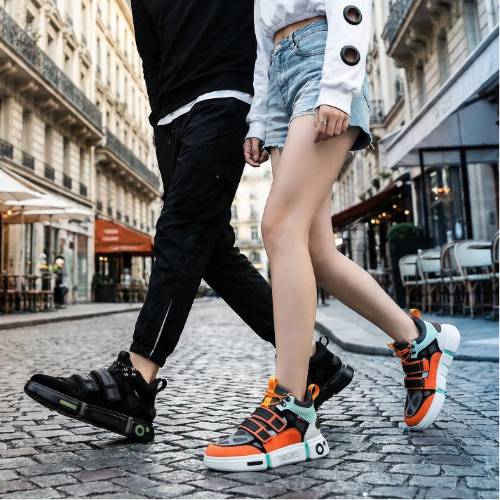 รองเท้าผ้าใบอเนกประสงค์แฟชั่นสำหรับผู้ชายและผู้หญิง ดีไซน์ทันสมัย ตัดเย็บด้วยเส้นสายที่โดดเด่น ตัดสีสันอย่างมีสไตล์