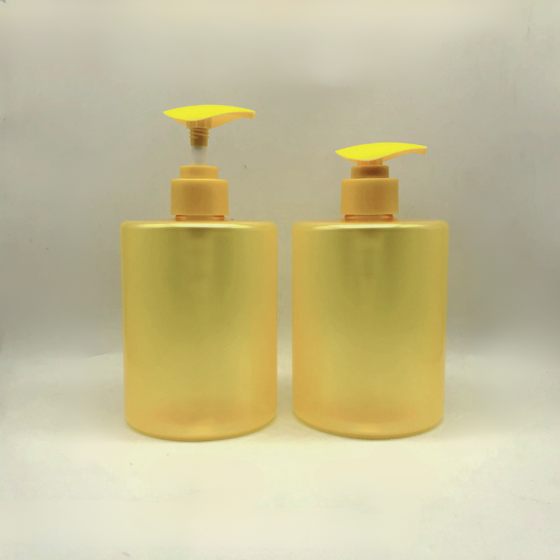 ขวดปั๊มแชมพูสำหรับทารกพลาสติก PET ขนาด300มล.-350มล. สีเหลืองขวดปั๊มแรงดันสำหรับผลิตภัณฑ์ดูแลผิว