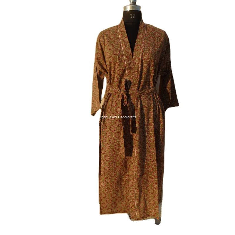 ชุดนอนยาวสไตล์ฮิปปี้โบฮีเมียนของผู้หญิงอินเดียกระโปรงยาวพิมพ์ลายบล็อกแขนยาวสีเหลืองสำหรับฤดูใบไม้ผลิ